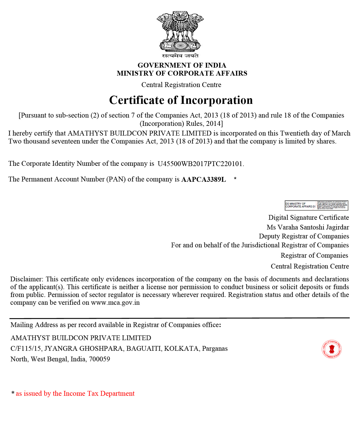AMATHYST BUILDCON PRIVATE LIMITED is a North 24 Parganas based company working towards excellence in the Construction space, and believe in pursuing business through innovation and technology. Our team comes with several years of industry experience, and comprise of a highly motivated set of specialists